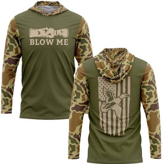 Blow Me Retro Camo Duck Hunting SPF50 Performance Hoodie